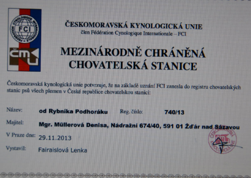Název naší chovatelské stanice byl registrován 29.11.2013 pod registračním číslem 740/13